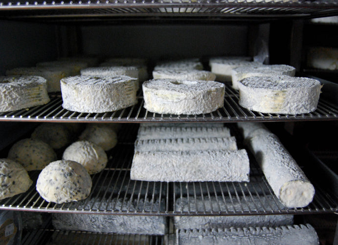 We have four ripening rooms – for hard & semi-hard, white bloomy & goat, fresh and, finally, blue. Italian cheeses are rubbed in olive oil to ensure they don't dry out. White bloomy (geotrichum & candidum) moulds on cheeses such as Brillat Savarin or Brie need careful monitoring on a daily basis. Our team works methodically to ensure every cheese reaches its peak of taste & texture.